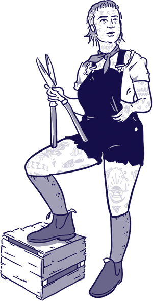 That doesn't stop them from breaking into people's gardens to water their plants, always stealing a suspiciously clean trowel or a garden gnome for their time. What kind of monster can't even keep their mint alive? Rotating lovers like their gardening tools; they've always got a few on the go – all of whom know each other as well as they know Tuff Nutt.